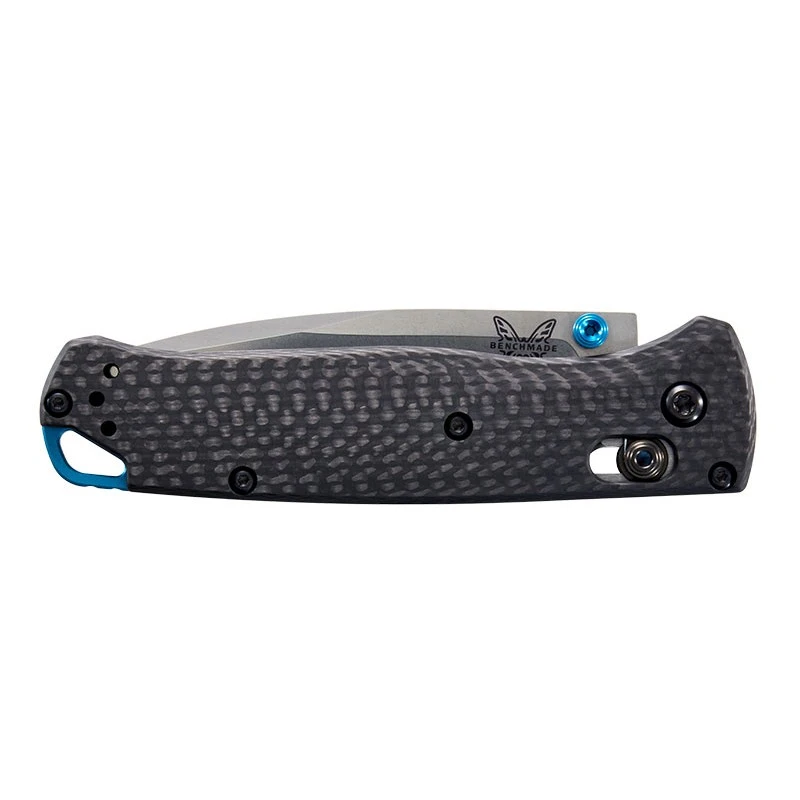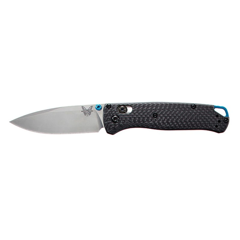 Le Benchmade Bugout est clairement le couteau de poche EDC par excellence, que l’on peut aisĂ©ment transporter d’un bout Ă l’autre. Ce modèle 535_3 va vous laisser de marbre, il faut dire qu’il est Ă la fois performant et Ă©lĂ©gant, tout ce qu’on demande Ă un couteau pliant ! Ce Bugout est dotĂ© d’une lame de 82mm, profil drop point, conçue en acier CPM-S90V de grande qualitĂ©. Une lame satinĂ©e qui est marquĂ©e par le logo papillon Benchmade situĂ© juste Ă cĂ´tĂ© du double thumb stud au coloris bleu Ă©tincelant pour la note moderne. Ce couteau Benchmade Bugout 535_3 intègre une poignĂ©e fraisĂ©e en fibre de carbone, elle comporte un clip rĂ©versible afin de faciliter le transport au quotidien. Le backspacer bleu permet lui aussi de simplifier les dĂ©placements quotidiens. FabriquĂ© aux Etats-Unis, ce modèle 535_3 est un must pour les utilisations quotidiennes. N’oubliez pas la personnalisation par gravure en supplĂ©ment !