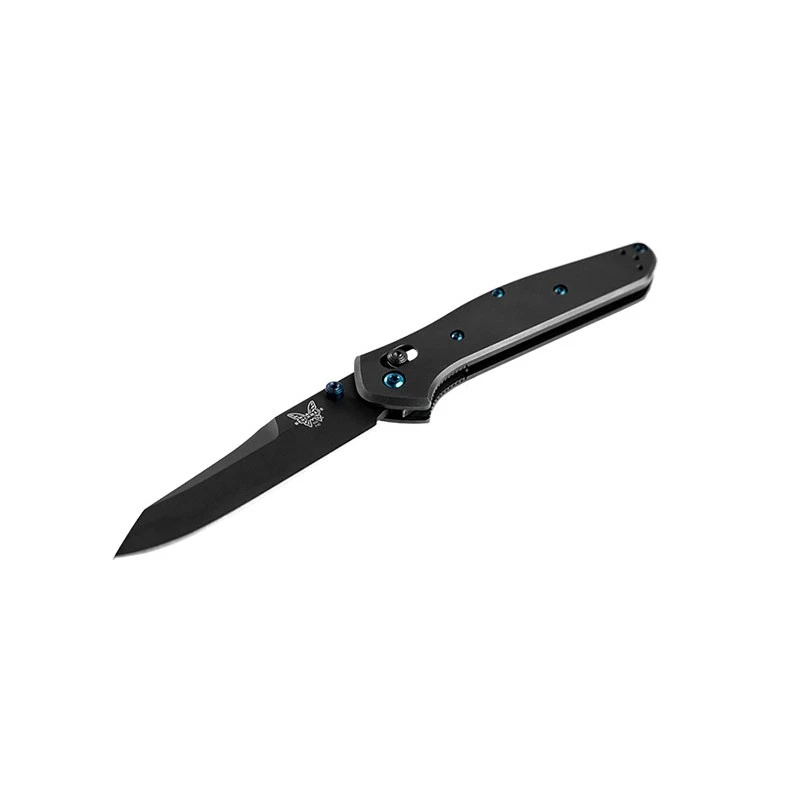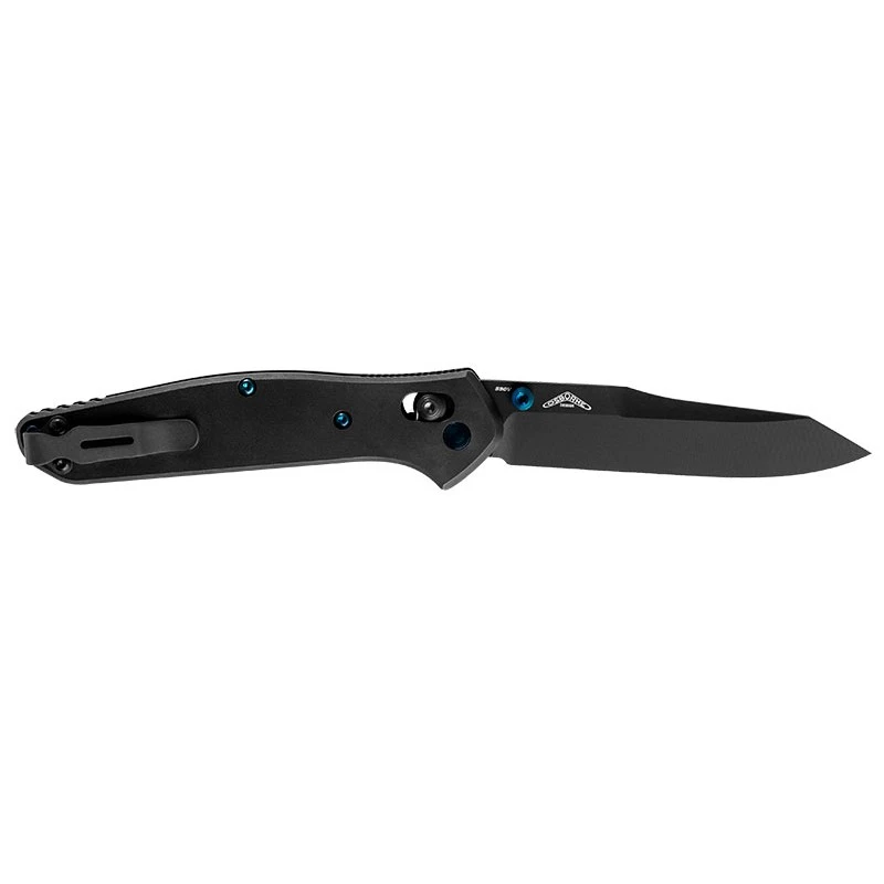 Le Benchmade 940BK_2003 Warren Osborne est un couteau pliant d’exception limité à 2000 exemplaires dans le monde. Une édition limitée qui se distingue par son revêtement noir furtif, avec des éléments bleu saphir pour un aspect ultra élégant. La lame noire de 86mm en acier CPM-S90V de qualité supérieure est de forme reverse tanto, elle intègre un double thumb stud bleu saphir pour une ouverture en toute simplicité (le verrouillage est de type axis lock). Avec logo papillon Benchmade en blanc, pour une excellente visibilité par contraste.
