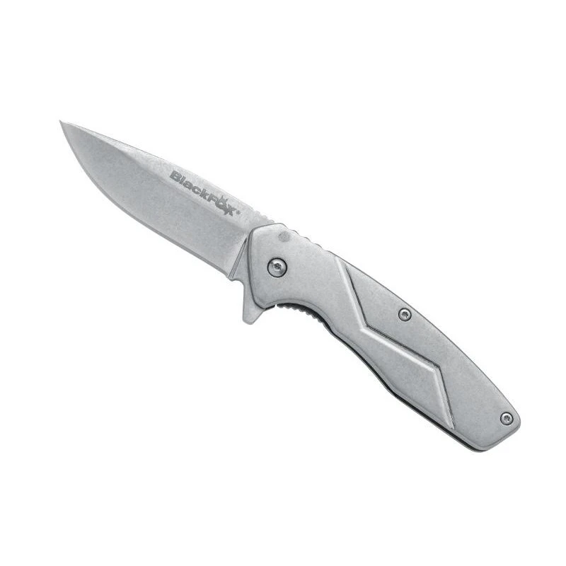 Ce couteau Black Fox Steelix est muni d’une lame avec flipper en acier 440C finition stonewashed. MarquĂ©e du texte « BlackFox » en rĂ©fĂ©rence au fabricant, sachez que vous pouvez Ă©galement personnaliser le verso de la lame du texte de votre choix. Pour cela, il faudra ajouter un supplĂ©ment de 8,90€ en plus du prix du couteau Black Fox Steelix, soit un total de de 48,80€ gravure comprise. Toutefois, la gravure est Ă©videmment facultative, vous pouvez tout Ă fait acheter ce couteau de poche comme il est prĂ©sentĂ© sur l’image. Tout acier, le manche de 10cm de long est aussi conçu en acier 440C. Un clip de poche est prĂ©sent pour que le transport se fasse tout le temps sans encombre.
