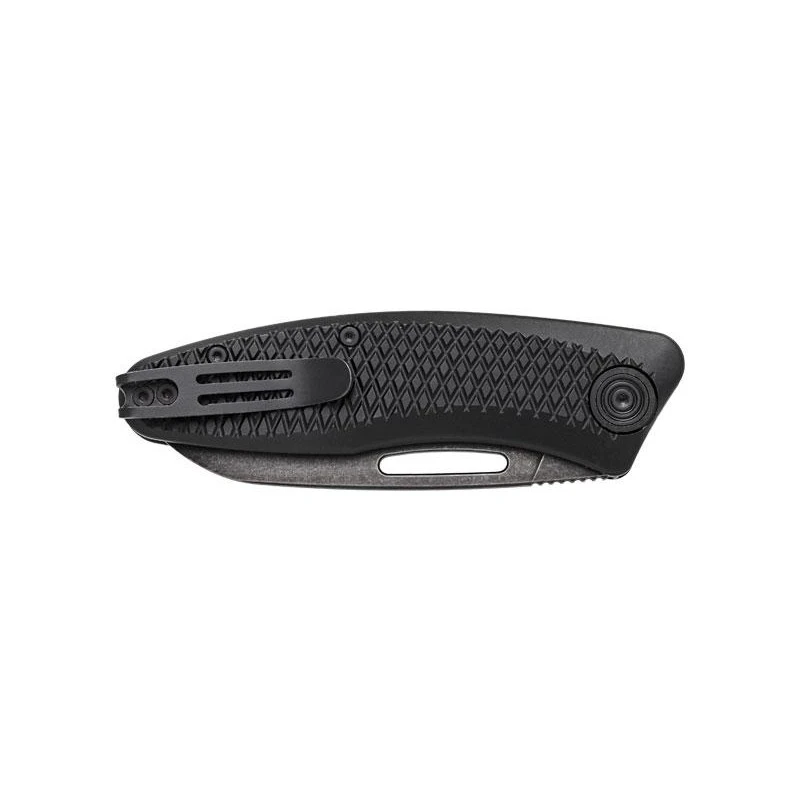 Le manche de ce couteau est en aluminium anodisĂ© noir, offrant une excellente prise en main et un confort optimal lors de son utilisation. Le clip et le spacer en acier inoxydable ajoutent une touche de sophistication Ă l’ensemble.