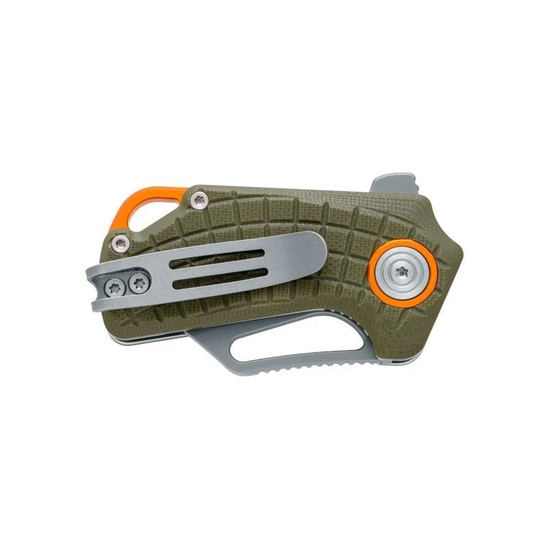Le manche en G10 vert est résistant aux chocs et offre une excellente prise en main même dans des conditions humides ou glissantes. Le clip en acier inoxydable permet de fixer facilement le couteau sur une poche ou une ceinture pour un accès rapide et pratique.