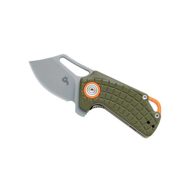 Le BlackFox Puck G10 vert BF.761OD est équipé d’un pivot et d’une entretoise en acier inoxydable anodisé orange pour une touche de couleur et de style. Le couteau pèse seulement 70 grammes et mesure 10 cm de longueur totale, en faisant un choix pratique pour une utilisation quotidienne.