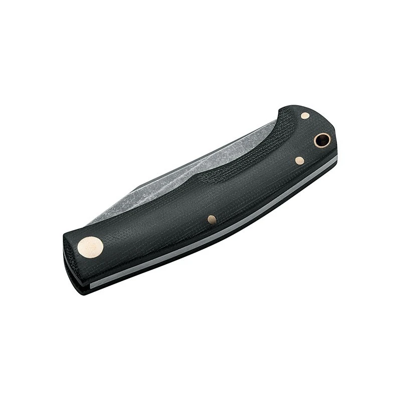 Le couteau Böker Boxer EDC Black, référence 111129, dispose aussi d’un manche en micarta noir mesurant 107mm de long afin que le transport du couteau ne soit jamais un problème. La poignée comprend des rivets décoratifs en laiton pour une apparence design, moderne, on soulignera aussi le fait que le trou pour lanière est renforcé par une douille en laiton. Un couteau EDC, par Böker, qui se montrera à la hauteur de toutes les tâches quotidiennes !
