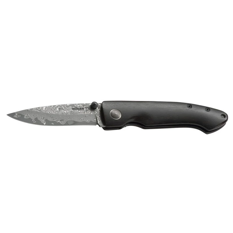 Le Böker Plus Damascus Gent 2 est une version plus petite, plus compacte, du couteau Damascus Gent 1. C’est ainsi qu’il propose un confort d’utilisation toujours plus grand tout en conservant les mêmes caractéristiques. Il possède une lame en acier damas 67 couches dotée d’une forte élégance : elle mesure 69mm de longueur et se verrouille de façon fiable par l’intermédiaire du liner lock. Elle peut être facilement déployée grâce au double thumb stud sur lequel le pouce vient s’appuyer. Le manche du couteau Böker Plus Damascus Gent 2 est fait de bois d’ébène au coloris sombre, sans oublier son clip foncé au dos à l’origine de la grande facilité de transport. C’est un couteau de gentleman qui brille par son style, son gabarit réduit mais aussi ses performances de haute voltige. Il n’a clairement rien à envier aux modèles plus grands !