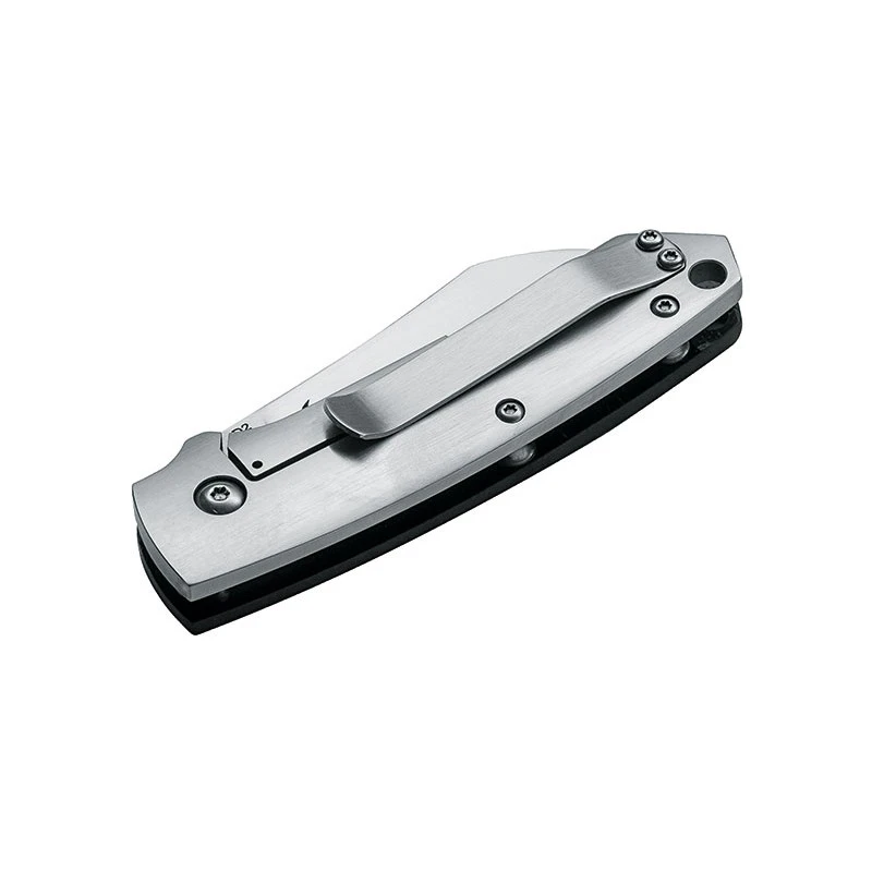 Ce couteau pliant Böker Plus Cox Pro 10, signé Anso, possède un manche en G10 noir au recto, ainsi qu’en acier inoxydable au verso pour une allure ultra-moderne, contemporaine. Le G10 est texturé pour que le confort de prise en main soit maximal. Trou pour cordon, lanière, en bout de poignée et clip de poche tip-up au dos pour une facilité de port déconcertante. À titre informatif, l’épaisseur de lame du couteau Cox Pro 10 Böker Plus est de 3,9mm.