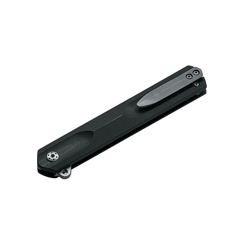 Le Böker Plus Kyoto, modèle 01BO241, est un couteau pliant de type gentleman, au design mince et harmonieux. Il possède un manche en G10 noir fraisé en 3D, ce qui confère une allure moderne mais aussi une prise en main confortable en toutes circonstances. La poignée noire mesure 113mm de long, un gabarit dont la taille est largement acceptable, la preuve, c’est que le couteau Böker Plus Kyoto pourra être rangé dans une poche sans la moindre difficulté !