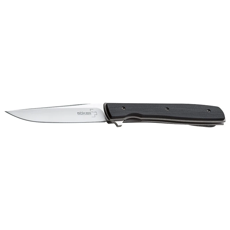 L’incontournable couteau Böker Plus Urban Trapper de Brad Zinker dans sa version manche en G10 noir. C’est un couteau de poche EDC gentleman de conception extrêmement plate, une allure des plus raffinées qui plaira au plus grand nombre. Le manche en G10 noir mesure 108mm de longueur ce qui assure une facilité de transport en toutes circonstances. Il faut savoir que le Böker Plus Urban Trapper est un modèle très léger avec un poids total d’environ 50 grammes. Sur ce modèle, la lame est fabriquée en acier inoxydable VG-10 (longueur 87mm) avec en guise de décoration le logo Böker Plus (possibilité de personnaliser la lame par gravure). Le mécanisme de verrouillage est de type Liner lock, à noter qu’un flipper est également présent pour pouvoir ouvrir la lame toujours plus rapidement, et d’une seule main. L’Urban Trapper de chez Böker, l’ergonomie au service de la performance !
