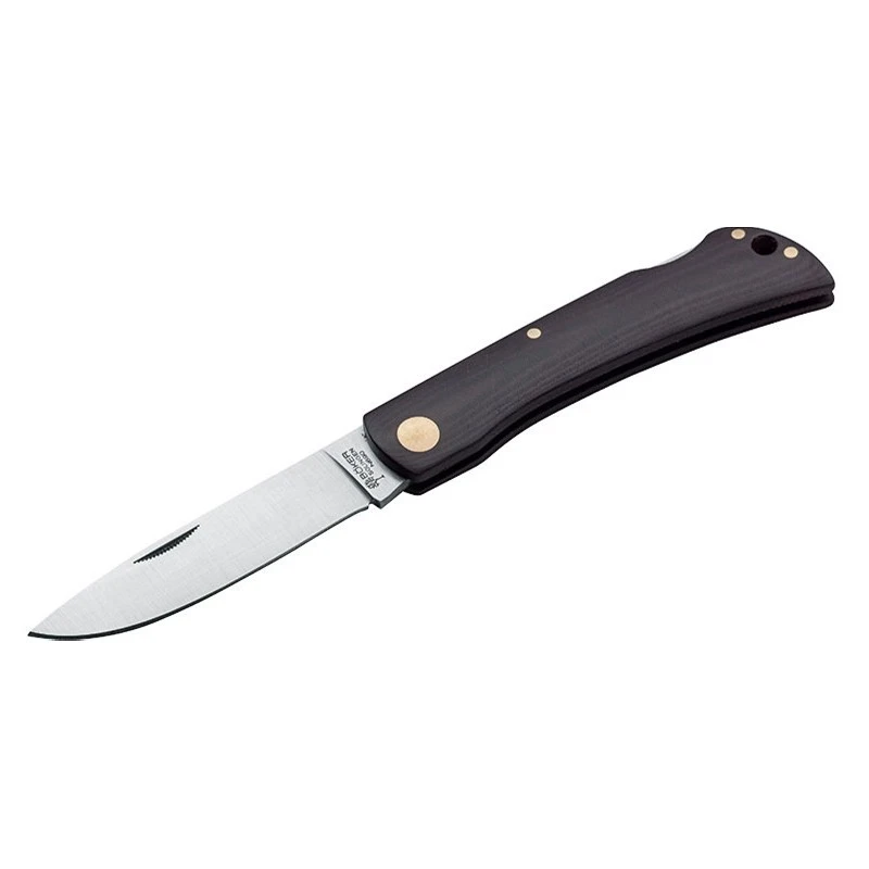 Le Rangebuster Maroon, signé Böker, est un couteau de gentleman muni d’un joli manche en micarta marron, dont le design est sublimé par des rivets en laiton. La forme profilée du manche assure une ergonomie parfaite, si bien que les manipulations sont confortables à chaque instant. Grâce au trou pour lanière, le transport du couteau Böker Rangebuster Maroon 110914 ne sera jamais un problème. À noter qu’ici, le système de verrouillage est de type back lock.
