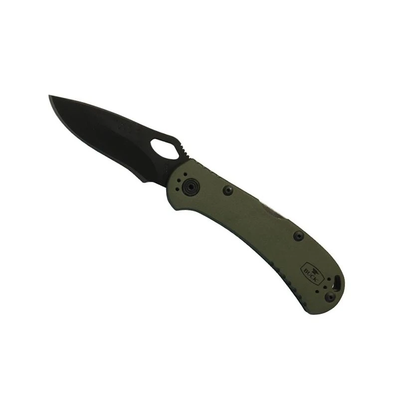 Le couteau pliant Buck Spitfire n° 0722ODS2 a une allure très militaire. En effet, il possède un manche vert foncé en aluminium anodisé ainsi qu’une lame noire à trou et à cran en acier inoxydable 420. Ce modèle Buck Spitfire 0722ODS2 est simple à transporter du fait que son manche vert foncé ne mesure que 11cm de longueur. Il tiendra sans problème dans une petite poche de pantalon, d’ailleurs, un clip est également présent pour pouvoir transporter le couteau Buck avec toujours plus d’aisance au quotidien. Si vous souhaitez prendre soin de votre couteau Buck Spitfire 0722ODS2, nous vous recommandons de jeter un œil sur cette catégorie dédiée aux étuis de couteaux pour manche de 11cm. Couteau de poche made in USA (fabriqué aux Etats-Unis).