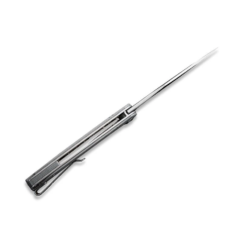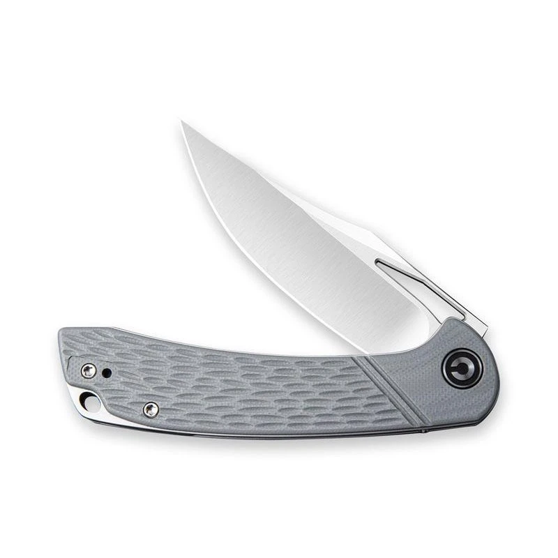 Le Dogma est un couteau pliant Civivi caractérisé par une lame de type clip-point ainsi qu’un manche (et entretoise) en G10, texturé pour un style toujours plus moderne. Sur ce modèle C2005B, la poignée est en G10 coloris gris, toujours avec la présence du logo Civivi blanc sur noir (contraste optimal). Le manche mesure 11cm de long, et intègre un clip en acier inox ajouré au dos, tout cela permettant à l’utilisateur de pouvoir transporter son couteau Civivi Dogma avec énormément de facilité. Note importante : en passant commande, vous recevrez le couteau, mais aussi une pochette en nylon noir idéale pour le rangement mais aussi la protection.