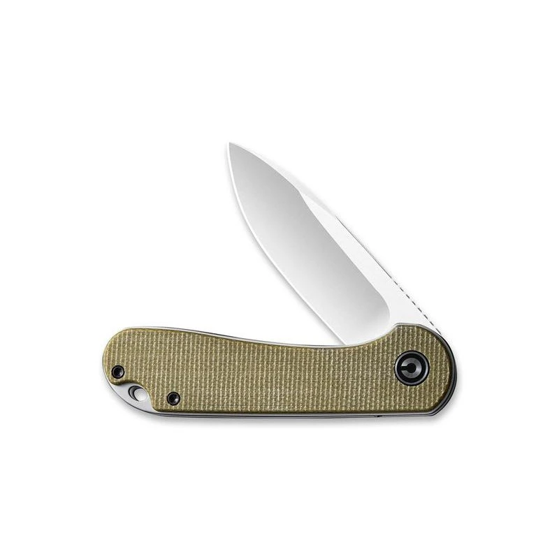 Le coloris olive est un vert assez clair, qui a de nos jours, beaucoup de succès. Une couleur qui fait bien sûr référence au fruit que l’on aime déguster à l’heure de l’apéritif par exemple. Porteur de la référence C907S, ce couteau Civivi, modèle Elementum, possède justement un manche en acier inoxydable gris avec plaquettes en micarta vert olive, il y a aussi le logo Civivi décoratif. Un clip en acier inox noir au dos vient parfaire l’ensemble, il permet bien entendu de pouvoir transporter le couteau pliant avec toujours plus de facilité, d’aisance.