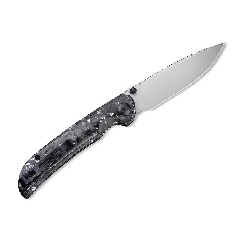 Le couteau Civivi Imperium C2106B atteint un niveau d’élégance extraordinaire. Comment ne pas apprécier son manche fait de résine et comportant des inclusions d’éclats de fibre de carbone et d’argent ? Cela se traduit par une poignée d’apparence sombre, dynamisée par des pointes plus claires. De longueur 11cm, le manche est marqué par le logo Civivi de forme ronde, il intègre une entretoise en G10 et surtout un clip afin de faciliter le transport. Ce couteau pliant Civivi Imperium fibre carbone/argent est doté d’une lame en acier Nitro-V à la finition stonewashed, une finition délavée pierre idéale pour le masquage des rayures. Mesurant environ 88mm de long, elle se déploie simplement et rapidement, et de façon très fluide par le biais du bouton double, le front flipper ainsi que le mécanisme ball bearing. Le verrouillage de la lame s’opère grâce au populaire liner lock. Un couteau Civivi qui allie performances et design : que demander de plus ?