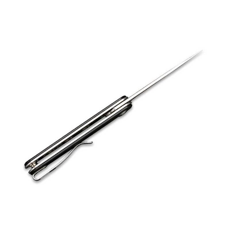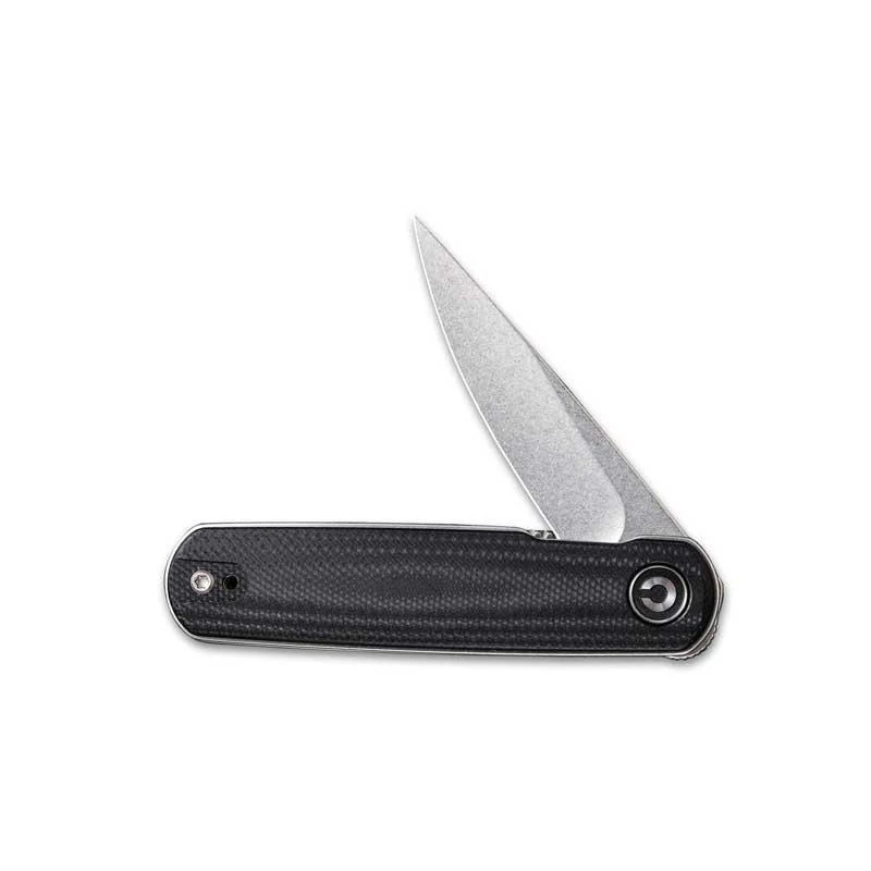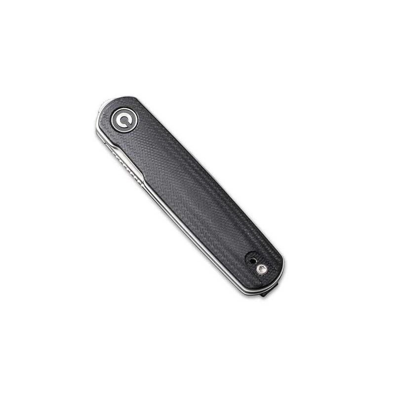 Le Civivi Lumi C200243 est un couteau pliant conçu par Justin Lundquist. Ce modèle correspond à la version « manche noir » puisque la poignée de 9cm est ici fabriquée en acier inoxydable avec plaquettes en G10 noir. Elle est enrichie du logo Civivi et intègre un clip de poche gris au verso afin d’accentuer la facilité de transport. En position fermée, le couteau pourra être rangé à l’intérieur de la belle pochette en nylon noir fournie.