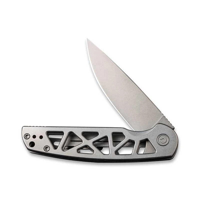 Le Civivi Perf est un couteau pliant Ă verrouillage frame lock qui ne vous laissera certainement pas indiffĂ©rent par son style original et moderne. Fait d’acier inoxydable gris, son manche de 10cm de longueur est largement ajourĂ© par des motifs gĂ©omĂ©triques aux bords arrondis. Tout cela contribuant bien sĂ»r au fort esthĂ©tique global du couteau ! Comportant un clip de transport au dos, le manche est enrichi du logo Civivi oĂą la lettre C se fond dans la masse pour une harmonie parfaite.