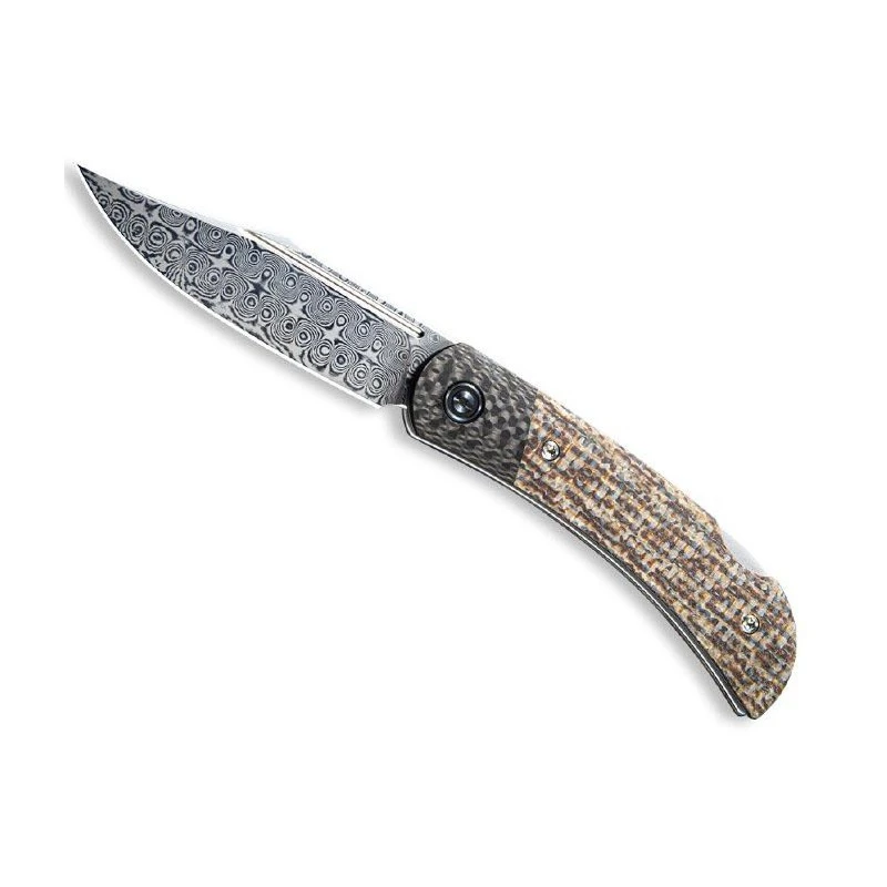Le Civivi Rustic Gent, modèle C914DS2, est un couteau pliant au design bluffant, extraordinaire, tant il est élégant. Il possède une lame clip-point fabriquée en acier damas industriel inox à cran, elle mesure précisément 75mm de long. Rappelons que l’acier damas est de grande qualité, il est facilement identifiable en raison de ses nombreux motifs attrayants. L’épaisseur de la lame est de 2,5mm.