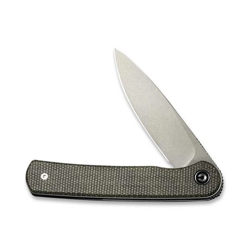 Le Civivi Stylum vert foncé est un couteau pliant de type slip joint qui se dote d’une lame d’environ 75mm de longueur en acier 10Cr15CoMoV (dureté de 59-61 HRC). Elle présente une finition délavée grise qui en plus d’apporter un certain style, réduit la visibilité des éventuelles rayures qui peuvent subvenir à la suite d’utilisations. Lorsqu’il est refermé, on peut observer le front flipper, une excroissance qui dépasse à l’avant, et sur laquelle le doigt vient s’appuyer pour garantir la bonne ouverture. Cette dernière s’opère de façon douce et fluide grâce au mécanisme ball bearing. Le Civivi Stylum se décline en d’autres coloris.