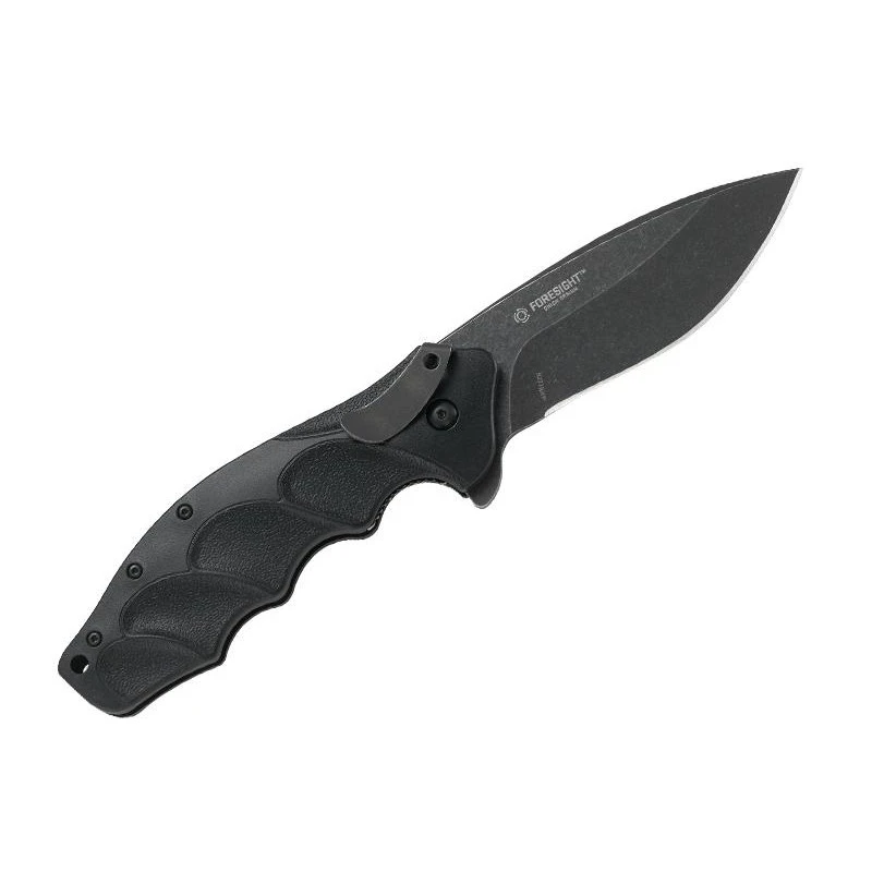 Le Foresight est un couteau pliant tactique conçu une fois de plus par l’excellent designer Ken Onion. Il possède une lame en acier 1.4116 Ă haute teneur en carbone, si bien que la lame blackwash est très tranchante ainsi que facile Ă affĂ»ter. Le système d’ouverture assistĂ©e vous permet d’ĂŞtre toujours prĂŞt Ă intervenir, système IKBS pour une ouverture de la lame en douceur, verrouillage possible d’une seule main (liner lock). Le couteau CRKT Foresight K221KKP possède Ă©galement un manche de 13cm de long, en nylon et fibre de verre noir, gage de soliditĂ© mais aussi de lĂ©gèretĂ©. Les rainures rendent le confort de prise en main exceptionnel, un manche qui tient bien en main, fermement. Au bout de la poignĂ©e, on observe un petit ajour qui est en rĂ©alitĂ© un passe-lacet, afin de pouvoir attacher le couteau tactique plus facilement. Avec le CRKT Foresight, soyez parĂ©s pour les interventions les plus exigeantes !
