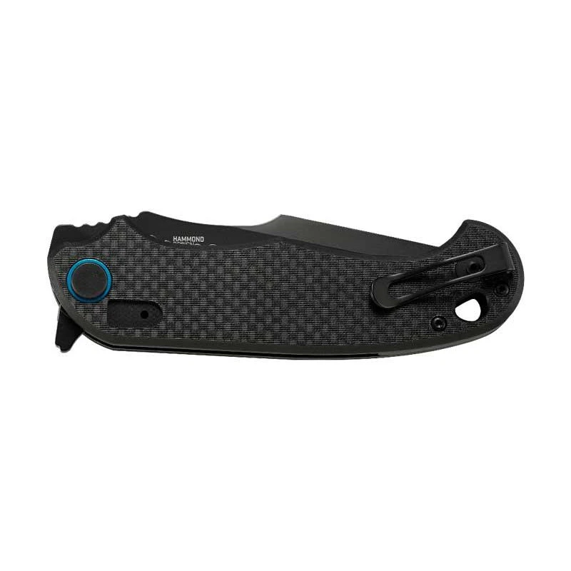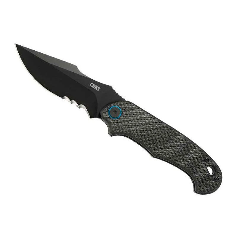 Le manche du couteau de poche CRKT P.S.D Black est conçu en G10 ainsi que fibre de carbone assurant solidité, style et confort de prise en main. Le pivot bleu électrique vient rehausser le design de la poignée, la petite touche esthétique qui fait la différence ! Clip de poche noir et trou pour cordon en bout, de sorte à ce que le transport du couteau ne soit jamais un problème.