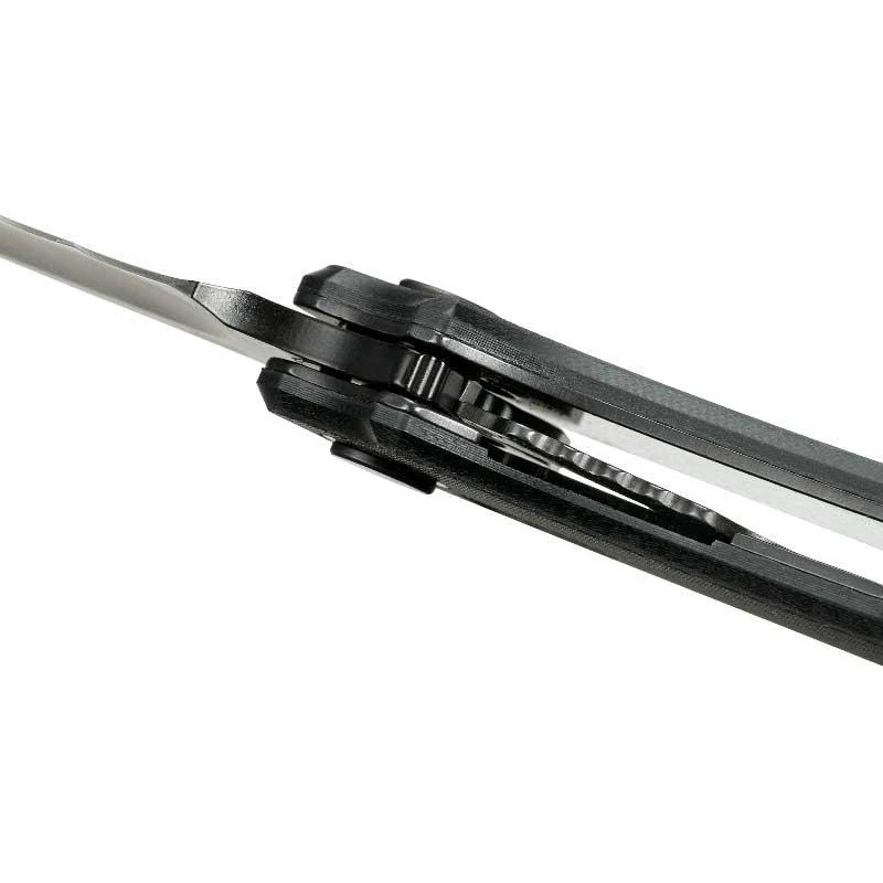 L’ouverture assistée fait que la lame se déploie à très grande vitesse, afin d’être réactif en cas de difficulté. Les ouvertures sont fluides grâce au système IKBS (roulement à billes). Pourvue d’un revêtement noir, la lame se verrouille grâce au mécanisme liner lock, elle est résistante à la corrosion et simple à affûter.