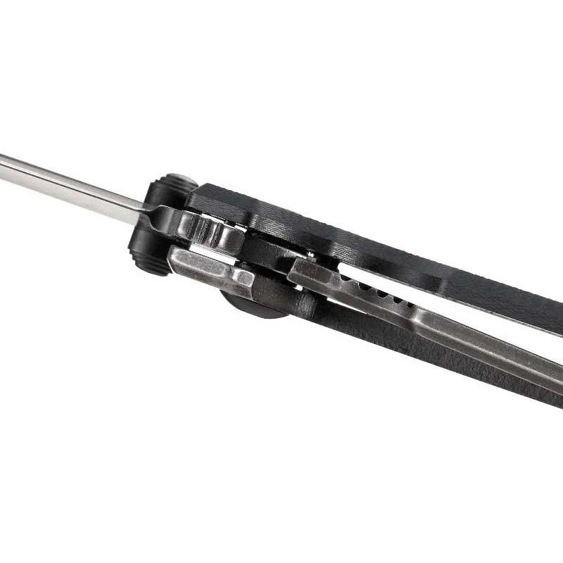 Le Squid XM possède une lame drop point d’environ 75mm, finition black stonewash, embarquant une ouverture assistée des plus pratiques. Actionnez le flipper et à mi-chemin, l’ouverture sera automatiquement complétée pour un déploiement à vitesse grand V. N’oublions pas de mentionner le système IKBS (roulement à billes) assurant de la douceur, de la fluidité, lors de chaque ouverture. La lame est construite en D2, un acier durable de grande qualité, elle comporte également un double thumb stud.