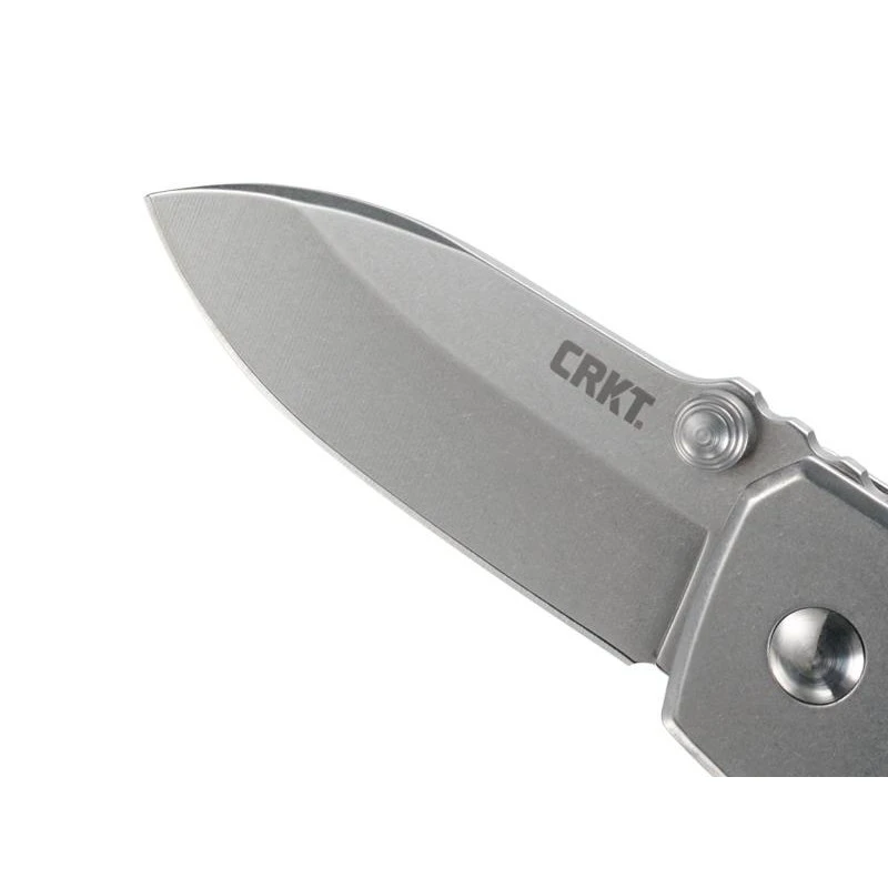 Le couteau Squid CRKT possède une lame en acier 8Cr14MoV à la finition stonewashed mesurant 57mm de longueur. La lame s’ouvre aisément grâce au double thumb stud (bouton double) et se verrouille par le biais du système frame lock. Elle est pointue en bout et mesure 57mm de long, on peut observer le logo CRKT situé juste à côté du thumb stud. Méfiez-vous de sa pointe ! Possibilité de gravure sur lame en supplément.