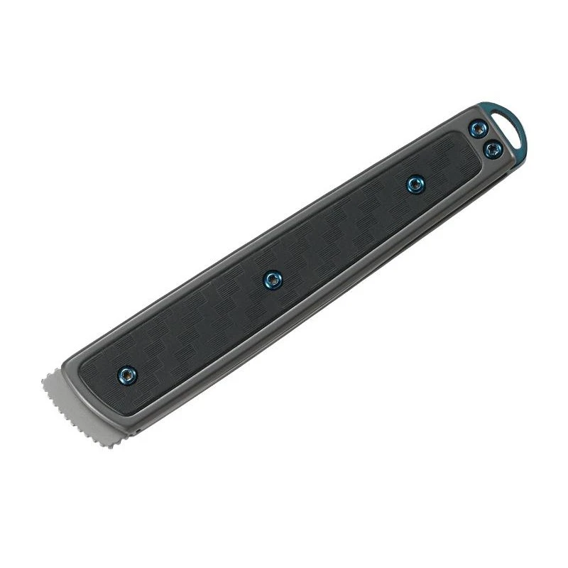 Le CRKT Symmetry est dotĂ© d’un manche de 115mm de long, en acier inoxydable avec insert nylon et fibre de verre coloris noir. La poignĂ©e est très Ă©lĂ©gante, esthĂ©tique, grâce aux motifs bleus comme des vis, une entretoise ou encore un clip de poche au dos. Le couteau CRKT Symmetry est un redoutable alliĂ© pour celles et ceux qui apprĂ©cient les voyages !