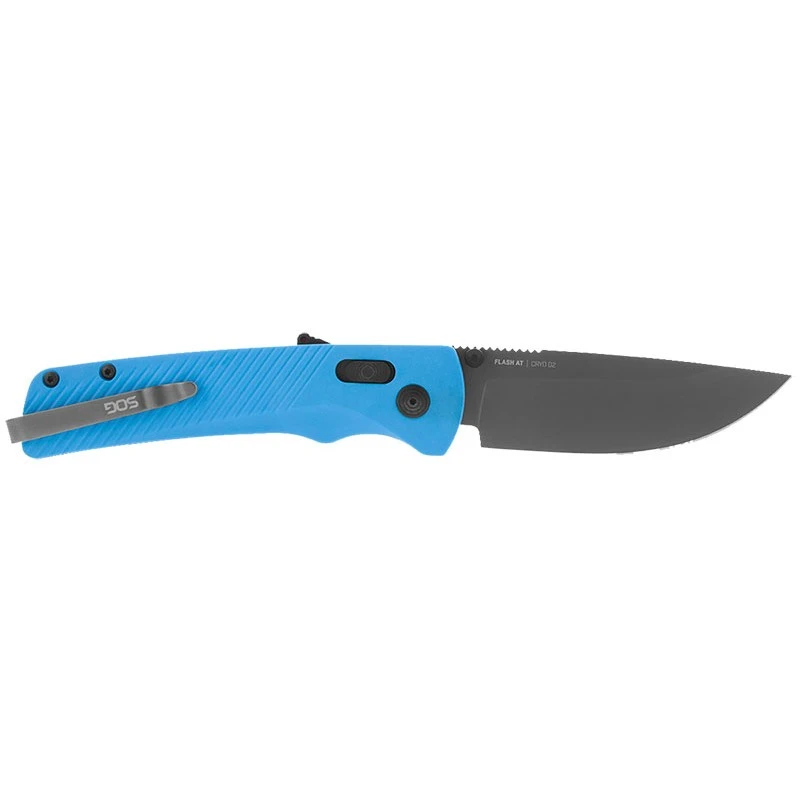 Le Flash AT dispose d’une ouverture assistĂ©e rapide avec le verrou AT-XR ambidextre de SOG et une conception de poignĂ©e ergonomique pour un confort et une prise en main bonifiĂ©s. En ce qui concerne la sĂ©curitĂ©, un système de verrouillage XR puissant assure le blocage de la lame pour une utilisation sans anicroche.