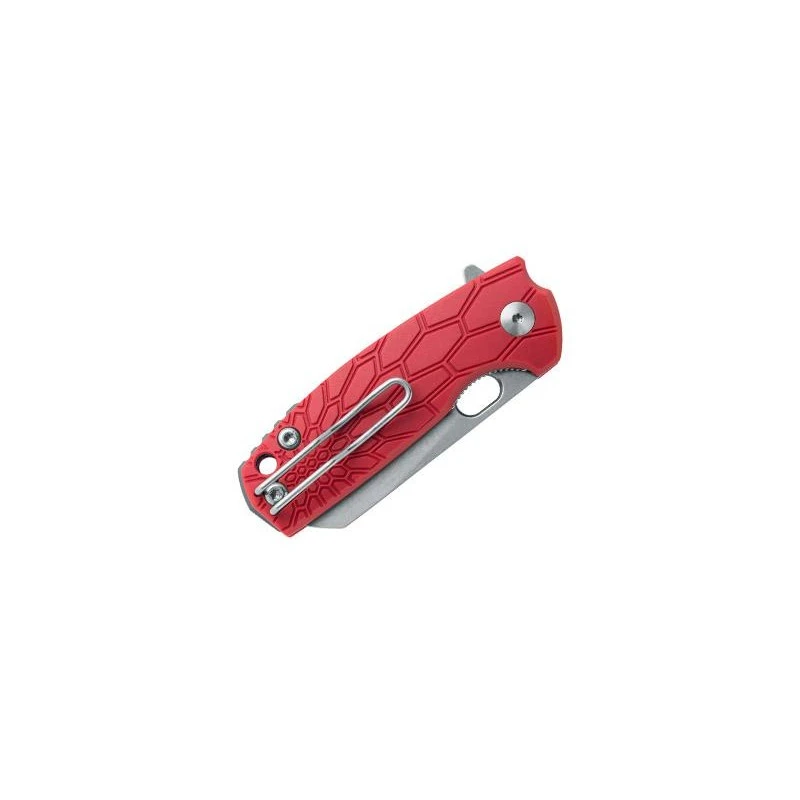 Le Fox Production FX.608R de Jesper Voxnaes est un couteau pliant possédant un manche de 85mm en FRN rouge (nylon/fibre de verre), avec entretoise en aluminium anodisé gris. Très stylé, le manche est embelli par un décor façon nid d’abeille, il y a aussi en bout un passe-lacet pour la transportabilité. Le clip au dos renforce cette aisance de port quotidienne, vous l’aurez compris, le couteau Fox Baby Core rouge FX.608R vous accompagnera partout sans la moindre difficulté.