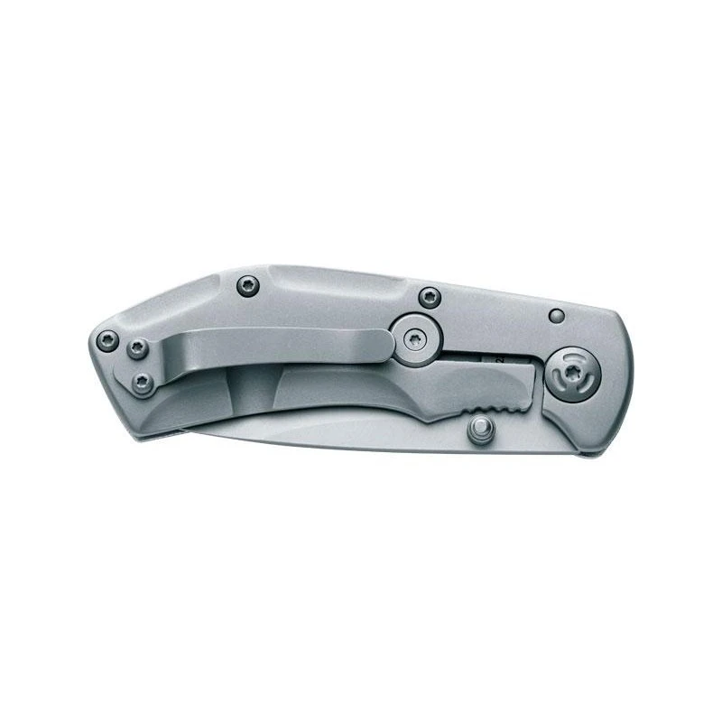 La lame à cran intérieur et à bouton double permet une ouverture facile et rapide d’une seule main, ce qui en fait un couteau pratique pour toutes les situations. Le revêtement sablé sur la lame ajoute une finition mate élégante, tandis que le manche en aluminium avec finition « bead-blasted » offre une prise en main confortable et sûre, même dans des conditions humides ou glissantes.