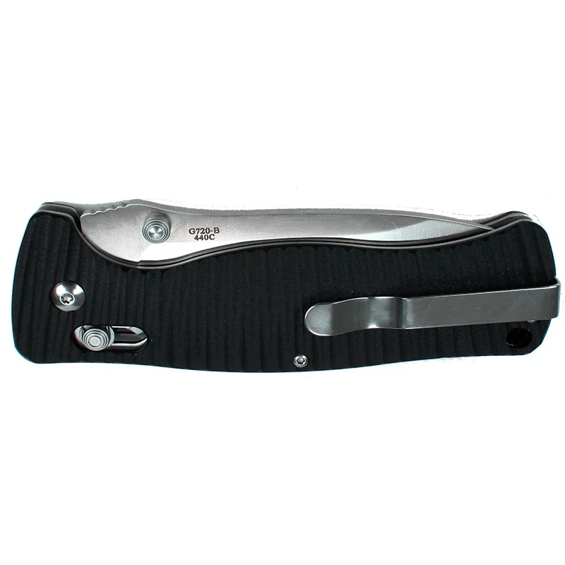 Le couteau Ganzo Firebird G720BK possède Ă©galement un manche conçu en G10 noir. Moderne, il est aussi très rĂ©sistant, notamment Ă la chaleur ainsi qu’aux effets chimiques. On notera Ă©galement la prĂ©sence d’une doublure rainurĂ©e de façon Ă ce que le couteau ne vous glisse pas entre les doigts. C’est aussi ça la force du Ganzo Firebird G720BK, une ergonomie sans faille ! PossibilitĂ© de porter le couteau Ă la ceinture via le clip de poche situĂ© au dos de la poignĂ©e.
