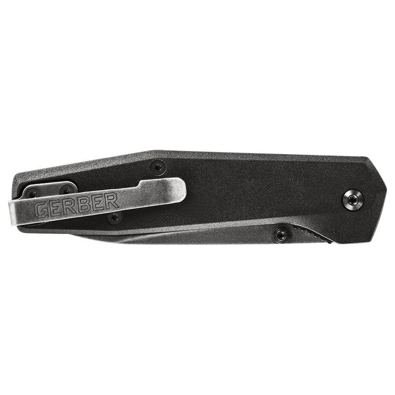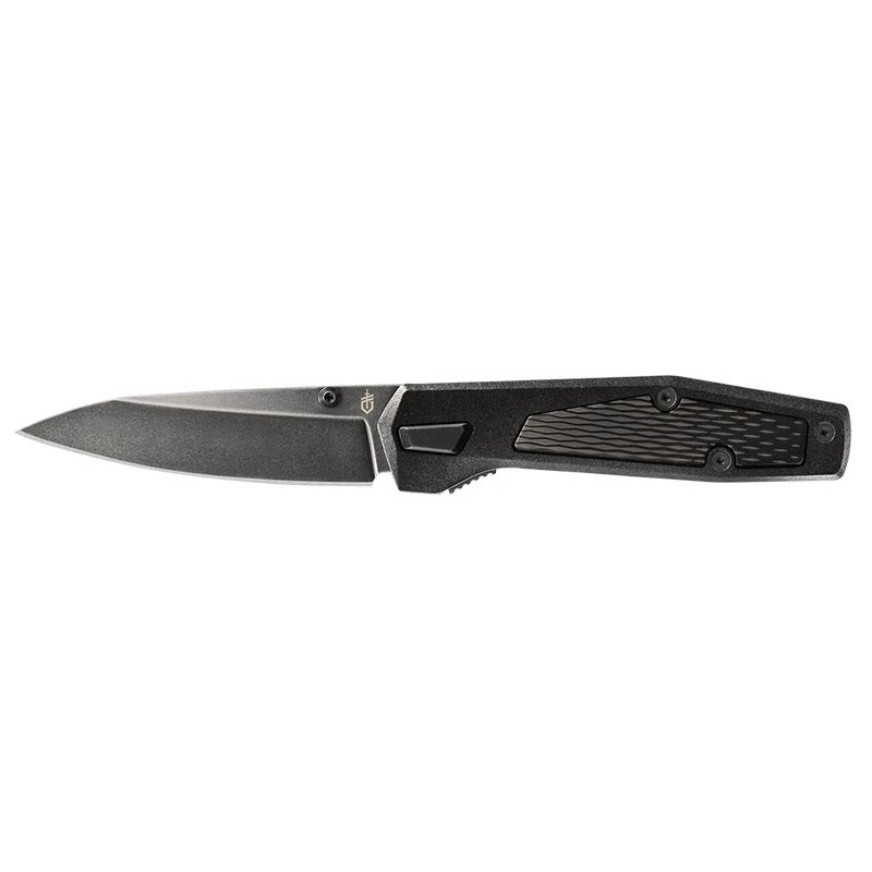 Le couteau Fuse Black Gerber est dotĂ© d’une lame drop point Ă la finition « black oxyde ». Elle se dĂ©ploie rapidement via le double thumb stud (bouton de pouce prĂ©sent sur chacune des deux faces). La face avant de la lame est discrètement marquĂ©e par le logo Gerber. Un EDC qui a du caractère, de la prestance …