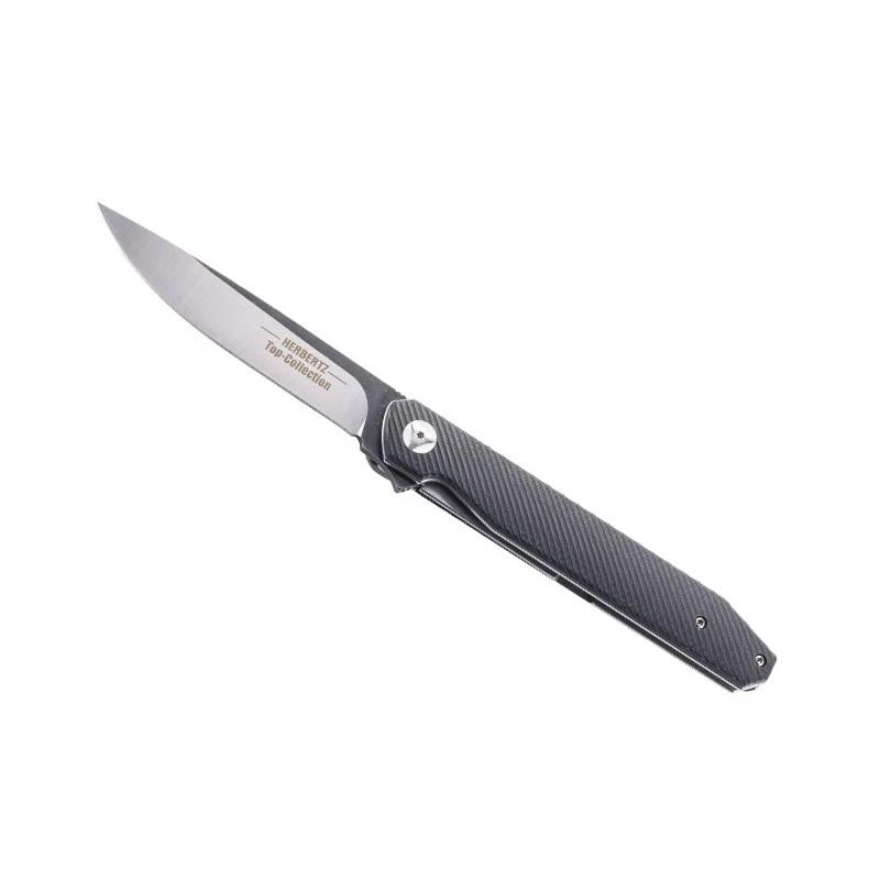 Appartenant à la série Top Collection, ce couteau Herbertz 532813 se dote d’une lame en acier 440 à cran intérieur avec flipper pour l’amener facilement en position de travail. La lame mesure 105mm de long et peut être gravée au niveau des deux faces (voir bouton ajouter une gravure). Le manche de 130mm de longueur est fabriqué en plaquettes en G10 noir, un manche aussi mince qu’élégant. Ce couteau Herbertz Top Collection 532813 a l’avantage de pouvoir être transporté très facilement, notamment grâce au clip au dos du manche. Autre avantage, ce modèle est livré avec son coffret de rangement en ABS ainsi qu’un étui en nylon noir.