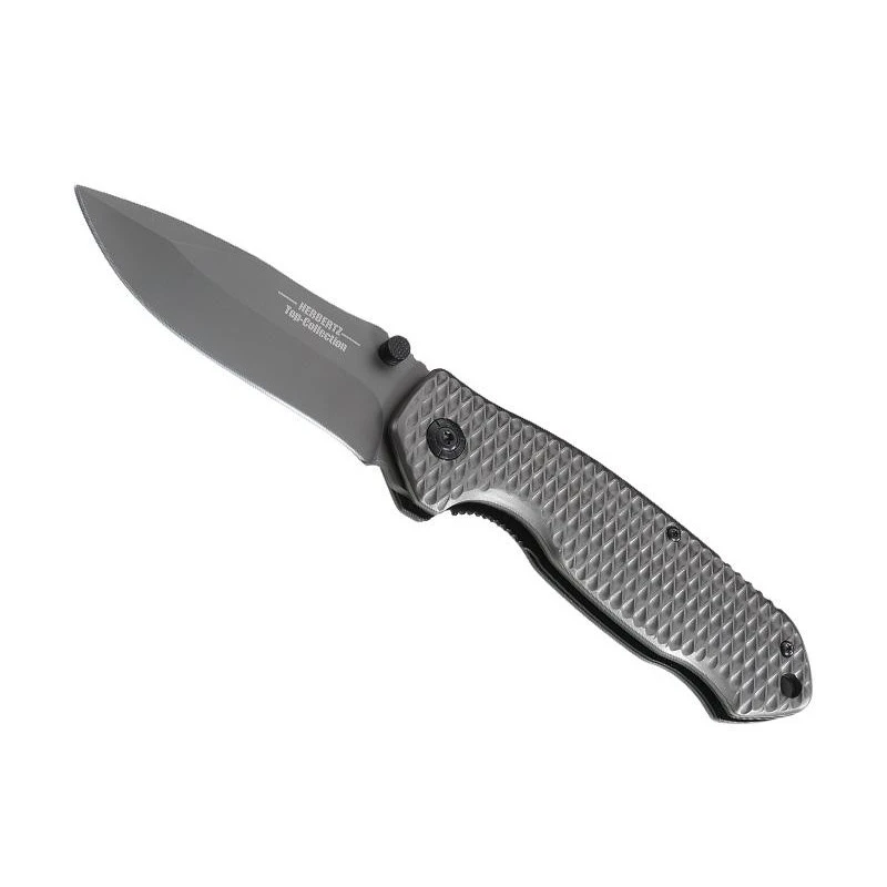Ce couteau Herbertz Top Collection 530013 va ravir tous les fans de la coutellerie Allemande aimant les couteaux fabriquĂ©s essentiellement en acier. En effet, ce modèle intègre un manche de 12,5cm de longueur conçu en acier inoxydable : les dĂ©corations prĂ©sentes donnent mĂŞme une impression de relief pour toujours plus d’Ă©lĂ©gance. DotĂ© d’un revĂŞtement titanium, ce couteau Herbertz Top Collection possède aussi une jolie lame Ă cran intĂ©rieur et Ă bouton double : elle est fabriquĂ©e en acier inoxydable 440. D’ailleurs, cette mĂŞme lame est marquĂ©e du texte « Herbertz Top Collection » sur la face recto, en rĂ©fĂ©rence Ă©vidente Ă la cĂ©lèbre marque Allemande du mĂŞme nom.