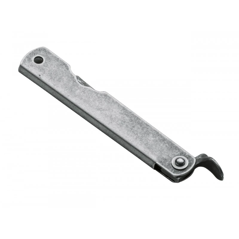 Ce couteau pliant Higonokami Kinzoku Damascus Böker possède un manche coloris argent fabriqué en acier inoxydable, toujours décoré bien sûr par les incontournables symboles Japonais. Résistant à la rouille/corrosion, le manche comporte en bout un trou pour lanière, il est également ajouré d’un trou sur le côté pour une prise en main en permanence confortable. Avec une longueur de 9cm et une très grande légèreté (poids de 37g), le Kinzoku Damascus Higonokami, par Böker, n’aura aucune difficulté à être transporté au quotidien. Un couteau de poche qui allie un style élégant/vintage à d’excellentes performances!