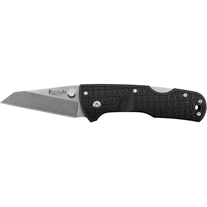 Le Kiridashi est un couteau traditionnel Japonais, utilisĂ© par pratiquement tout le monde au pays du soleil levant. Il est utilisĂ© pour toutes les tâches de coupe, une grande polyvalence qui sĂ©duit un public toujours plus large. Le fabricant Cold Steel a conçu la version pliante du couteau Kiridashi, en intĂ©grant une lame de 63mm de longueur en acier inoxydable 4034SS. La lame intègre un double thumb stud (bouton de pouce) avec juste Ă cĂ´tĂ© la prĂ©sence de l’inscription Kiridashi. N’hĂ©sitez pas Ă ajouter un texte via le bouton ajouter une gravure que vous trouverez plus bas. La poignĂ©e est de couleur noire, elle est fabriquĂ©e en griv-ex, un matĂ©riau plastique fortement renforcĂ© par de la fibre de verre afin d’apporter de la soliditĂ©. Elle est dĂ©corĂ©e par des motifs rappelant le style Asiatique, Japonais. Le Cold Steel Kiridashi est un couteau facile Ă clipser dans la poche grâce au clip rĂ©versible, il vous accompagnera partout, sans exception, et sans difficultĂ© ! Longueur totale : 165mm.