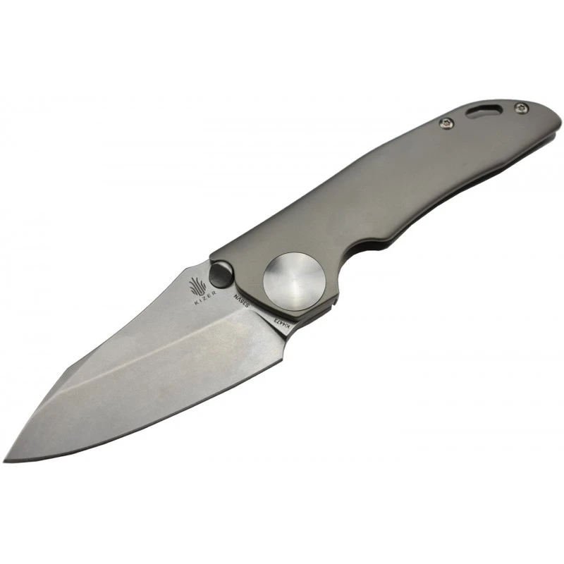 Designé par John Gray, le Kizer GPB1 est un couteau pliant au design très soigné, sans fioriture. Il possède une lame de forme Wharncliffe montée sur pivot et roulement à billes de sorte à s’ouvrir de façon douce et fluide. Des déploiements qui seront possibles d’une seule main grâce au double thumb stud ! D’une longueur approximative de 9cm, la lame est confectionnée en acier CPM-S35VN (épaisseur 3.98mm), sa dureté HRC est de l’ordre de 59/61. À verrouillage frame lock, elle bénéficie d’une finition stonewashed camouflant bien les éventuelles rayures.