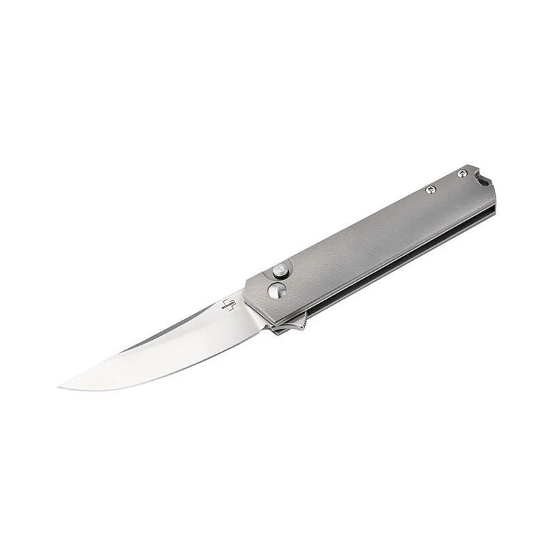 Situé à cheval entre le couteau de gentleman et tactique, ce modèle 01BO619 correspond à la version « bouton poussoir » du Kwaiken de Lucas Burnley.
