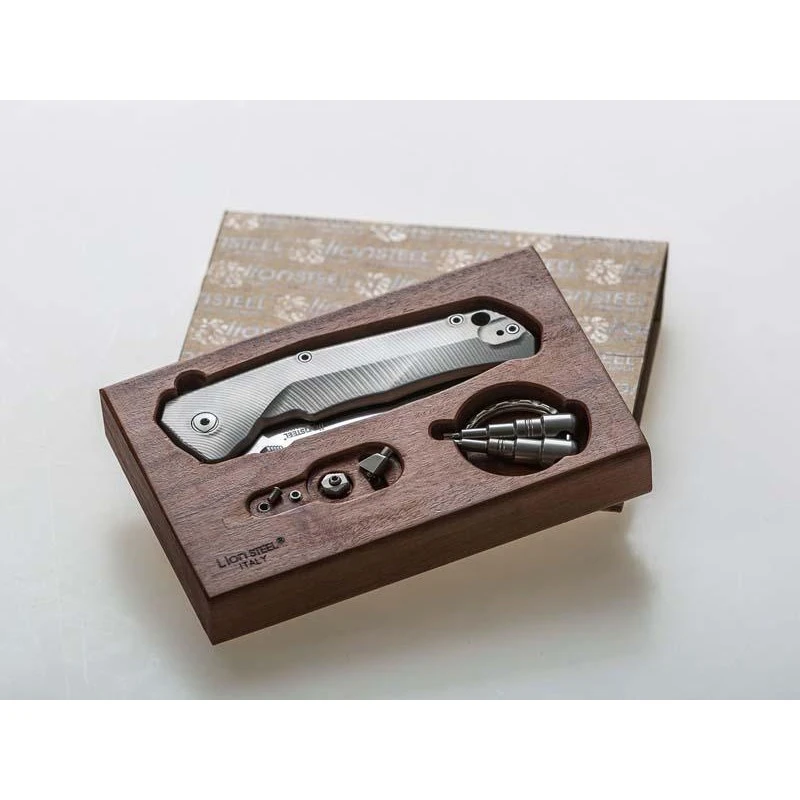 Si vous ĂŞtes un inconditionnel de la coutellerie Italienne LionSteel, vous connaissez très certainement le modèle TRE caractĂ©risĂ© par son système breveté Three Rapid Exchange. Cela offre plusieurs possibilitĂ©s pour l’Ă©quipement de la lame, Ă savoir nue, avec bouton plat ou avec flipper. De quoi pouvoir ouvrir votre couteau LionSteel TRE Ă une ou deux mains selon vos prĂ©fĂ©rences ! Vous avez face Ă vous le modèle TRE.FC qui dispose d’un manche de longueur 10cm en fibre de carbone noir (recto) et titanium gris avec clip et entretoise au verso. On peut le dire, il est très Ă©lĂ©gant et surtout agrĂ©able Ă tenir en main. Comme pour tous les modèles LionSteel TRE, la lame est fabriquĂ©e en acier M390 Bohler satinĂ© Ă cran intĂ©rieur. Une lame qui se dĂ©ploie très facilement grâce au système de roulement Ă billes IKBS. Design par Pensato Michele alias Molletta, couteau LionSteel TRE livrĂ© dans son magnifique coffret en bois avec bouton plat et flipper amovibles ainsi que 2 clĂ©s Torx (T6/T8).