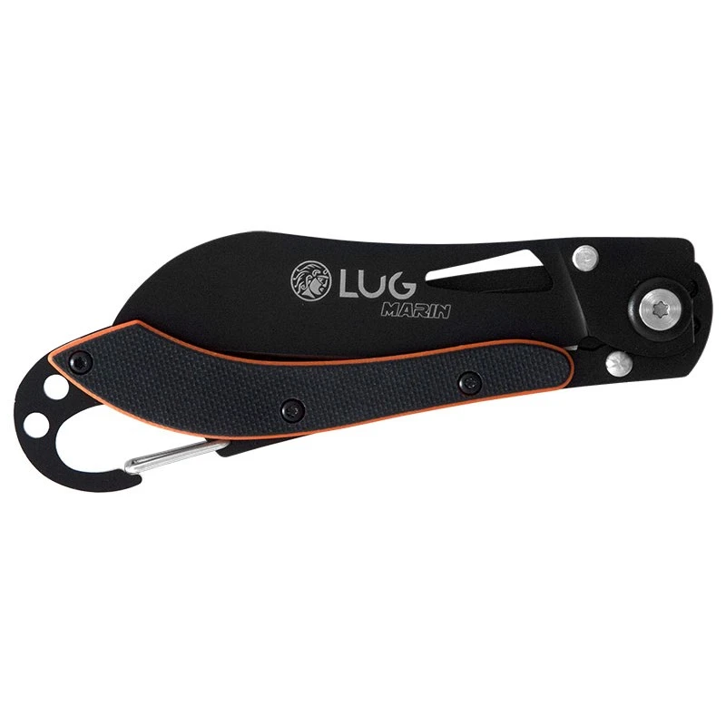 Appartenant à la gamme SPORT de la marque Française LUG, le modèle SP2TOB orange/noir est doté d’une lame de 74mm de longueur conçue en acier inoxydable 7Cr17MoV, toujours avec son revêtement black titanium. Lame ajourée à verrouillage frame lock, décorée par le logo LUG ainsi que l’inscription « marin ». Designé en France et disponible en d’autres coloris modernes. Gravure sur lame possible au verso.