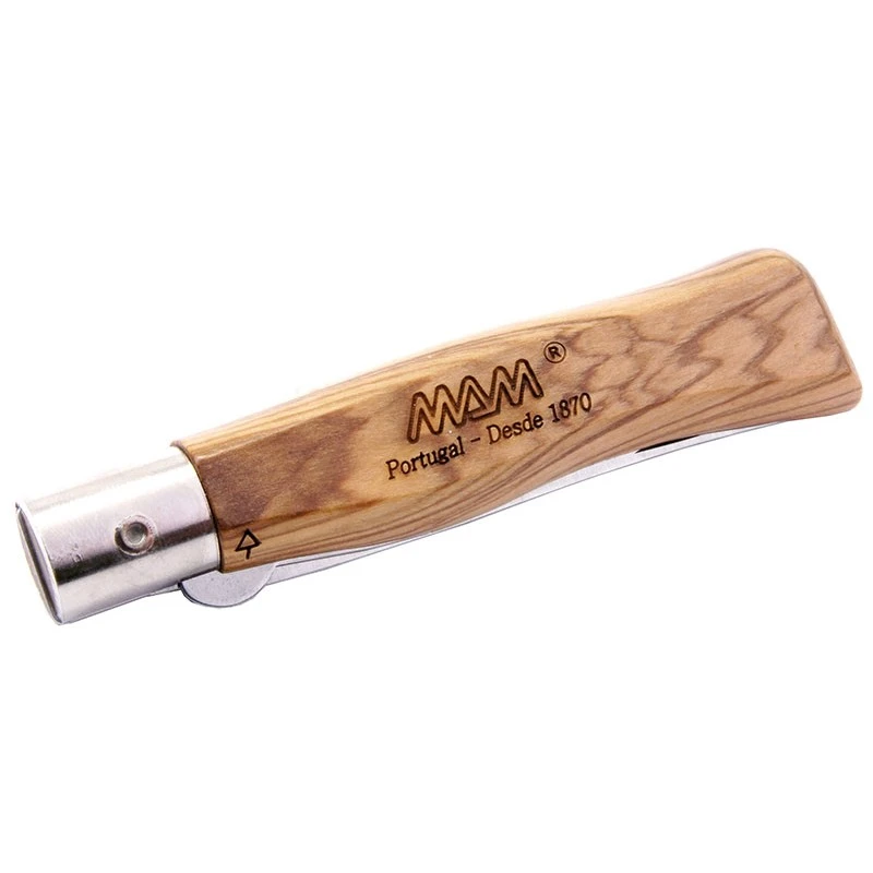 Le couteau pliant MAM Douro Grande est muni d’un manche en bois de olivier naturel spécialement traité pour résister à l’humidité. Sa forme garantit une excellente prise en main, elle mesure environ 11cm de longueur afin que le couteau puisse être rangé, transporté, sans aucune difficulté. Enrichi du logo « MAM Portugal – Desde 1870 », le manche intègre une virole en acier.