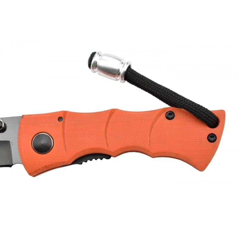 En raison de son manche coloris orange, conçu en G10, impossible de passer à côté du couteau Max Knives MKBAM OR sans le remarquer. Un manche orangé qui comprend de fins traits verticaux, procurant un effet bambou très stylé et apprécié de tous et toutes. Facile à repérer, le manche orange est agréable à prendre en main, il intègre aussi une paracorde, lanyard, sa longueur de 77mm assure une aisance de port quotidienne.