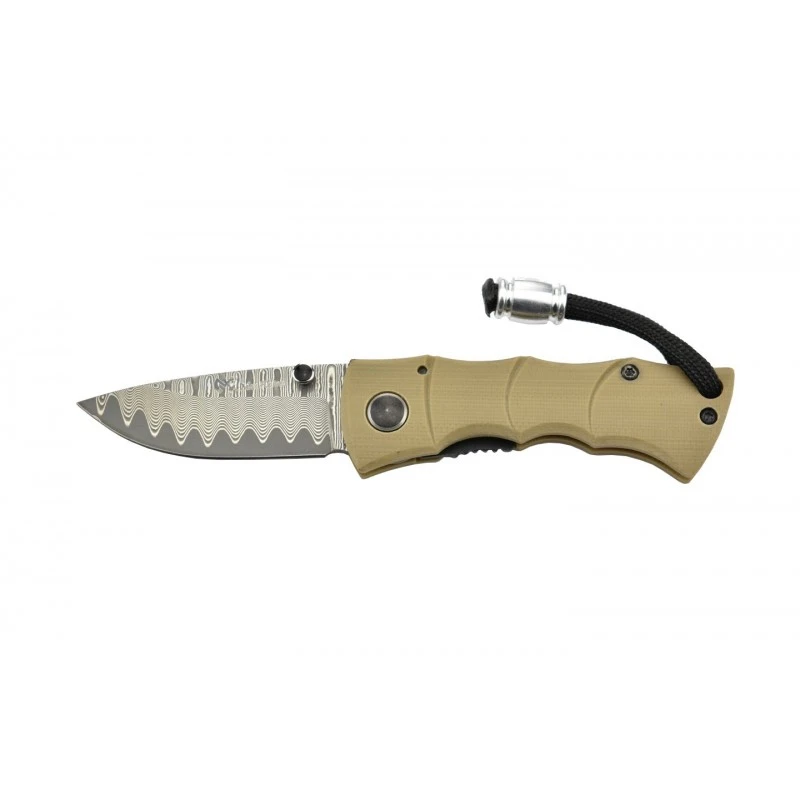 Le couteau de poche Max Knives MKBAM OTD dispose aussi d’un manche en G10 coloris sable, avec un effet façon bambou pour l’élégance, le style. On mentionnera le fait que la poignée mesure 77mm de long, ce qui assure une aisance de port quotidienne ainsi qu’une prise en main agréable et sûre. Voici les accessoires que comprend le Max Knives MKBAM OTD : paracorde, étui kydex ainsi que lanyard. Longueur totale en position ouverte : environ 13cm.