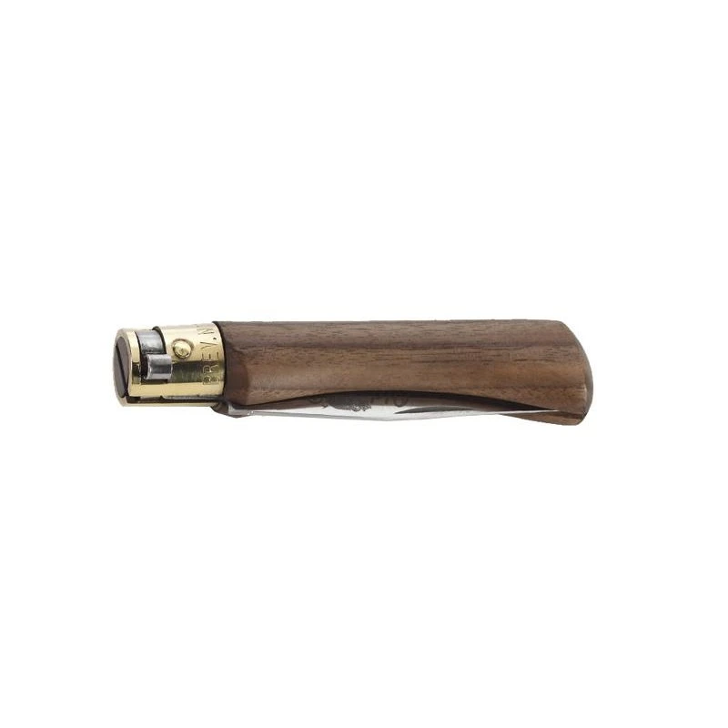 Ce couteau Old Bear taille S est doté d’une lame en acier AISI 420 satiné accompagnée d’une virole de sécurité en laiton. Le manche lui, est fabriqué en bois noyer et mesure 10cm de longueur. Un couteau de qualité conçu de manière artisanale en Italie.