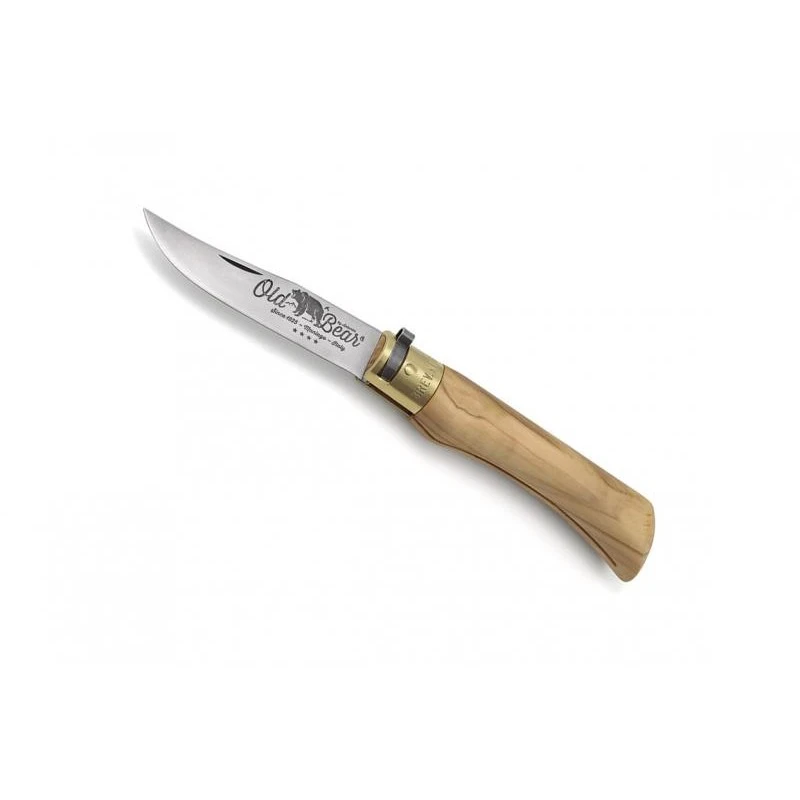 Ce couteau Old Bear taille L est dotĂ© d’une lame en acier AISI 420 satinĂ© avec virole de sĂ©curitĂ© en laiton ainsi qu’un manche de 12 cm de longueur en olivier traitĂ© Ă l’huile. Un couteau fabriquĂ© de façon artisanale en Italie dont la lame est marquĂ©e du logo Old Bear !
