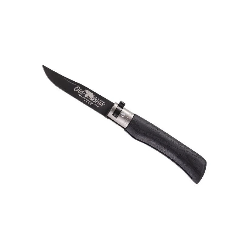 Vous aimez le couteau Old Bear Total Black virole grise taille L mais le trouvez légèrement trop grand ? Alors voici le couteau pliant qu’il vous faut, le même Old Bear mais avec un manche noir en bois d’ayous stratifié plus petit de 1cm : il mesure exactement 11cm de longueur. Grâce à cela, la facilité de transport est encore accentuée ! Côté lame, elle est toujours fabriquée en acier inoxydable 420 avec revêtement PTFE noir : elle est tranchante et résiste parfaitement bien face à la corrosion. Elle est sublimée par un ours en guise de décoration, mais ce n’est pas n’importe quel ours, c’est celui qui fait office de logo pour la coutellerie Italienne Old Bear. Une coutellerie artisanale qui existe depuis 1925 ! Toutefois, ce couteau pliant Old Bear Total Black taille M n’est pas totalement noir puisque la virole de sécurité est en laiton nickelé, elle est donc grise. En plus d’offrir de la sécurité en utilisation et en transport, la virole apporte également une touche design au couteau. Modèle livré en boîte individuelle avec certificat de contrôle qualité, preuve de l’authenticité du produit. Existe en taille L ou en version virole noire.