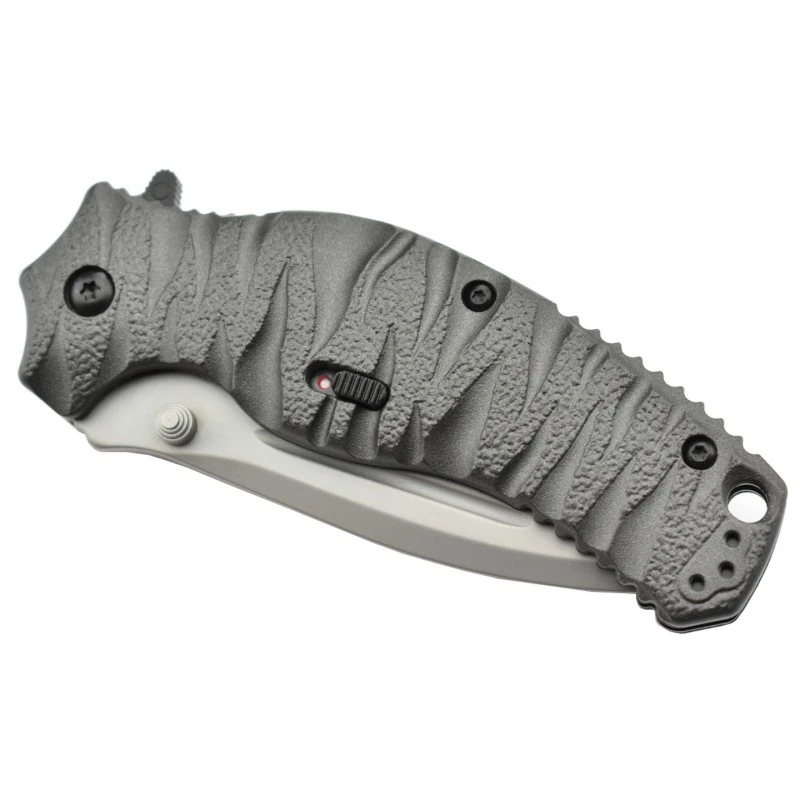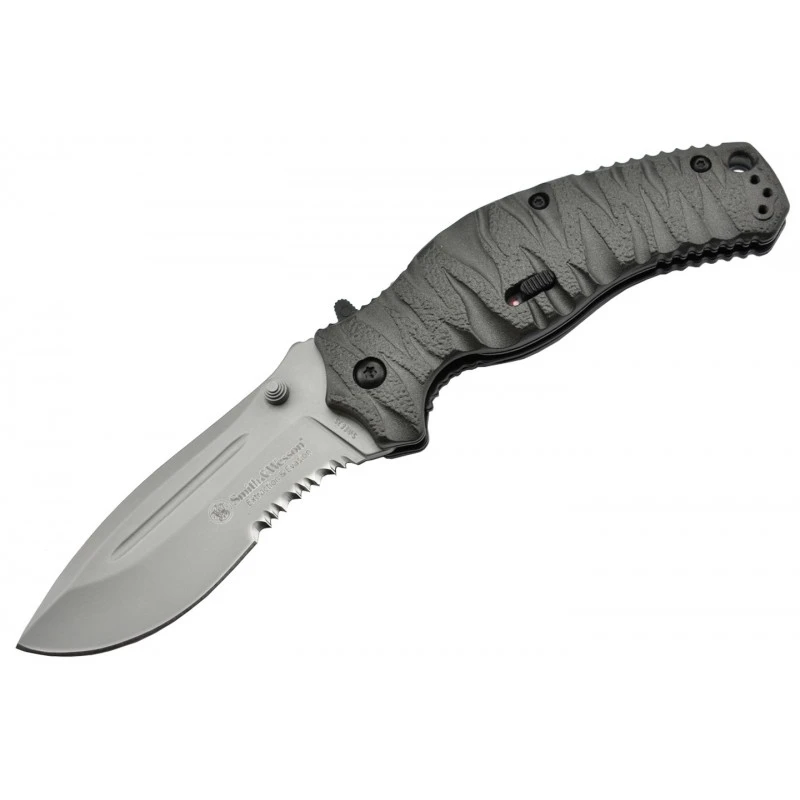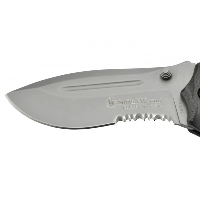 Les différences entre le Smith & Wesson SWEE2S et SWEE3S se situent au niveau de la lame combo, autrement dit à bord lisse ainsi que cranté pour toujours plus de polyvalence. Sur le modèle SWEE2S, la partie dentelée se situe à proximité de la poignée tandis que la lame intègre une rainure supplémentaire sur la partie haute. Quelques petits détails qui font une fois de plus toute la différence ! Possibilité de gravure sur lame au dos (voir bouton ci-dessous).
