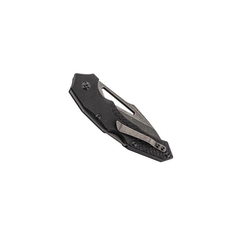 C’est l’entreprise Allemande Puma-Tec qui est à l’initiative de ce couteau pliant portant la référence 315913. Il possède une lame en acier 7Cr17 à la finition blackwash, elle a la particularité d’être largement ajourée, lui conférant ainsi de l’allure, du style. Le logo Puma-Tec en blanc est présent au niveau de la partie inférieure, le verrouillage est assuré via le mécanisme back lock. Le manche est fait de G10 noir avec textures, sa forme garantit un grand confort de prise en main tout en assurant une allure des plus sophistiquées, design. Pour que vous puissiez facilement transporter le couteau Puma-Tec 315913, un clip de poche est logé au verso du manche mesurant environ 13cm de longueur. Un look spectaculaire sans pour autant altérer les performances, voilà les promesses du Puma-Tec 315913 !