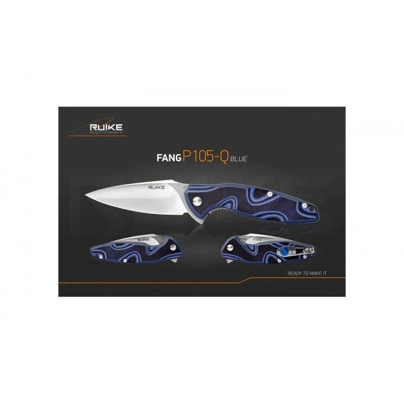 Le couteau pliant Ruike P105Q Fang dispose aussi d’une lame de 91mm de longueur, fabriquée en acier inoxydable 14C28N Sandvik, traité de manière intensive par Ruike ce qui permet d’obtenir une dureté idéale de 58-60HRC. Avec elle, le tranchant sera de grande qualité, pour des coupes nettes et précises au quotidien ! L’utilisation du couteau est simple et intuitive, actionnez le flipper vers le bas pour déployer la lame qui sera ainsi prête à fonctionner. Possibilité de la personnaliser, par gravure. Le Ruike P105Q Fang est également disponible en coloris bleu pale.
