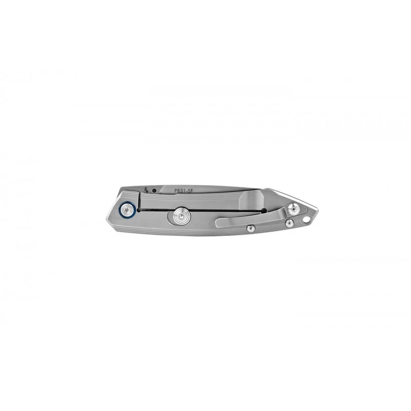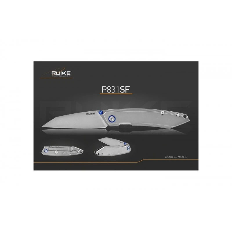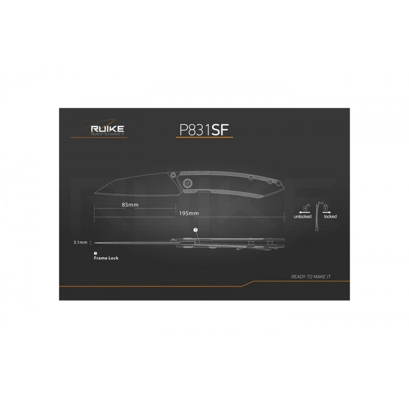 Le couteau pliant P831SF, par Ruike, possède une lame délavée de 85mm de longueur, conçue et fabriquée en acier inoxydable 14C28N Sandvik, avec traitement cryogénique. La lame se verrouille par le biais d’un Frame Lock, avec Beta Plus ce qui permet de passer d’un couteau pliant à un couteau fixe pour des conditions de coupe toujours plus exigeantes. Une lame qui s’ouvre plus facilement grâce au thumb stud bleu vif qui ne manquera pas d’apporter une petite touche décorative supplémentaire. Avec marquage du logo Ruike, possibilité de gravure (voir bouton ci-dessous).