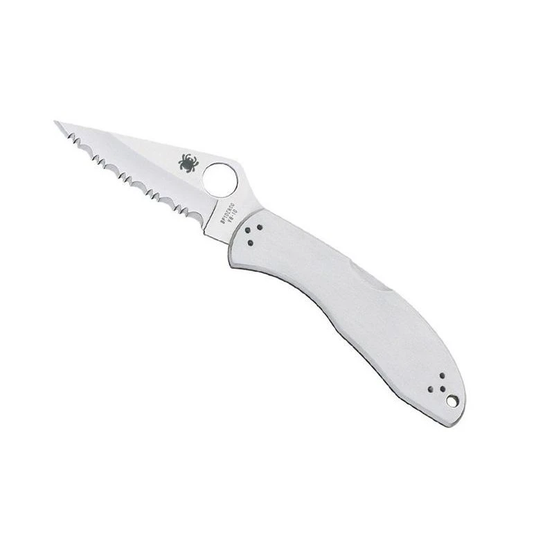 Le couteau pliant Spyderco Delica 4 référence C11S est fabriqué intégralement en acier inoxydable. Il se dote d’une lame à dents et à cran en acier VG-10, elle est particulièrement tranchante et conviendra parfaitement pour les activités Outdoor. Dotée d’un trou assurant une ouverture rapide, la lame est également décorée par le logo Spyderco, vous pouvez également exiger la gravure du texte de votre choix (+8,90€). Le manche lui est également conçu en acier, il mesure 11cm de longueur et est agréable au toucher. Grâce à son manche compact, le couteau Spyderco Delica 4 C11S est facile à transporter : un couteau pliant made in USA qu »il est facile d’emporter partout. Et pour que le transport soit toujours plus aisé, un clip de poche est également présent. Vous n’aurez plus aucune excuse pour ne pas avoir votre couteau Spyderco Delica 4 C11S avec vous lors des déplacements et mouvements.